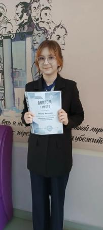 Биллер Элеонора, ученица 7 "Д" класса, заняла I место на муниципальном этапе регионального конкурса подростковых медиаработ "Без срока давности: Непокорённые".